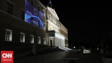 Με το μήνυμα «Είμαστε Εδώ – Ακούστε τη φωνή μας» φωταγωγήθηκε απόψε η πρόσοψη του Μεγάρου της Βουλής των Ελλήνων…