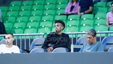 Στις κερκίδες του Telekom Center Athens βρίσκεται ο Τι Τζέι Σορτς, ο οποίος παρακολουθεί τον αγώνα Κετσμάνοβιτς – Μάισρακ, για…