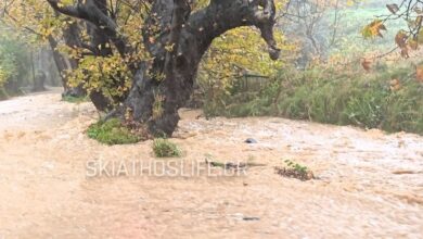 Επέλαση της κακοκαιρίας στη Σκιάθο: Ποτάμια οι δρόμοι, σοβαρά προβλήματα στο οδικό δίκτυο