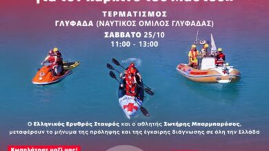 Ο Ελληνικός Ερυθρός Σταυρός διοργανώνει το Σάββατο (25/10) και ώρες 11:00 έως 13:00, στον Ναυτικό Όμιλο Γλυφάδας (Διαδόχου Παύλου 42),…