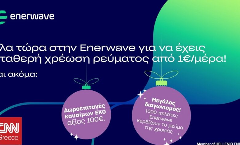 1.000 τυχεροί οικιακοί πελάτες της Enerwave θα κερδίσουν το ηλεκτρικό ρεύμα για όλο το 2026. Ο διαγωνισμός αφορά στους υφιστάμενους πελάτες και σε όσους γίνουν πελάτες από 1 έως 31 Δεκεμβρίου 2025. Η κλήρωση θα πραγματοποιηθεί στις 12 Ιανουαρίου 2026.