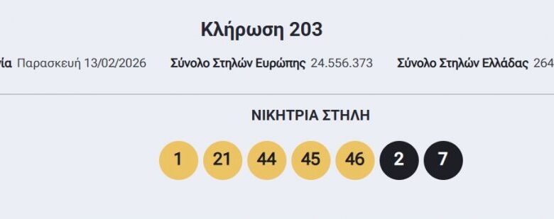 Πραγματοποιήθηκε σήμερα, Παρασκευή (13/2), η κλήρωση 201 του Eurojackpot που μοιράζει 31.000.000 ευρώ στους νικητές της πρώτης κατηγορίας.