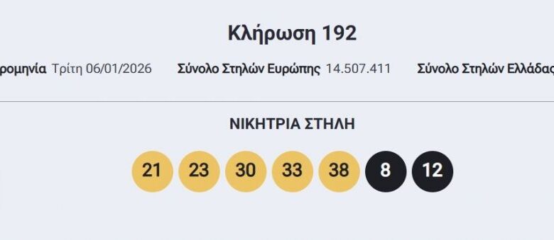 Πραγματοποιήθηκε η σημερινή (6/1) κλήρωση 192 του Eurojackpot που μοιράζει 10 εκατομμύρια ευρώ