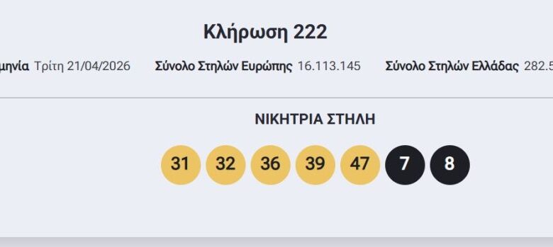 Πραγματοποιήθηκε η σημερινή (21/4) κλήρωση 222 του Eurojackpot που μοιράζει 28 εκατομμύρια ευρώ