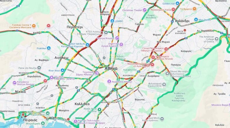 Η μεγαλύτερη πίεση καταγράφεται στον Κηφισό, όπου στην άνοδο το «κόκκινο» ξεκινά από τη Λεωφόρο Αθηνών και φτάνει μέχρι τη Νέα Φιλαδέλφεια. Αντίστοιχα, στην κάθοδο η δυσχέρεια ξεκινά ήδη από τη Λυκόβρυση και συνεχίζεται μέχρι την Ιερά Οδό, με συνεχείς καθυστερήσεις.