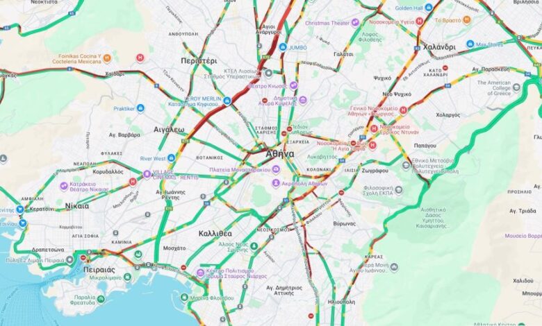 Κίνηση: Στο κόκκινο Κηφισός και Αθηνών – ‘Εως 30 λεπτά οι καθυστερήσεις στην Αττική Οδό