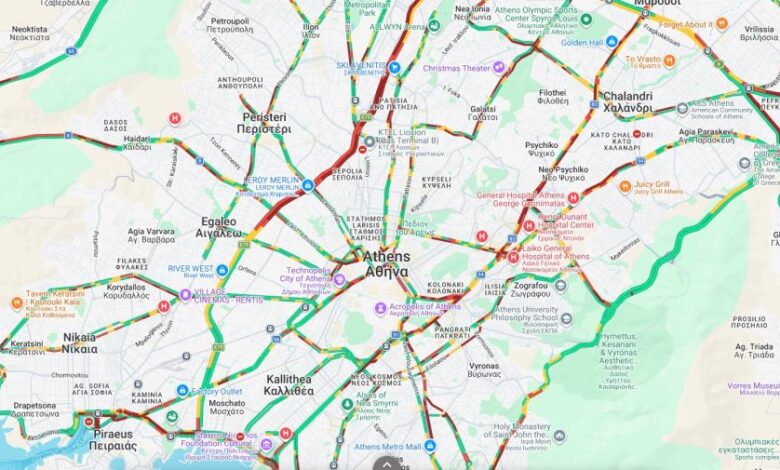 Κίνηση: Στο «κόκκινο» Κηφισός και κέντρο Αθήνας λόγω και της βροχής – Καθυστερήσει σε Αττική Οδό