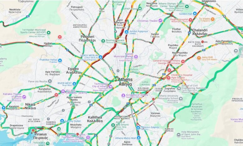 Στο κέντρο η κίνηση χτυπάει «κόκκινο» με τους περισσότερους κεντρικούς δρόμους να είναι μποτιλιαρισμένοι και συγκεκριμένα σε: