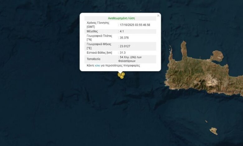 Σεισμός 4,1 βαθμών στα Φαλάσαρνα της Κρήτης