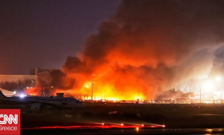Η φωτιά μαίνεται εδώ και τρεις ώρες, με αποτέλεσμα να ανασταλούν προσωρινά όλες οι πτήσεις στο κύριο αεροδρόμιο της χώρας.