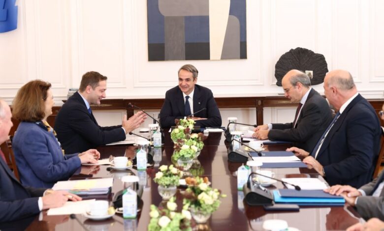 Στη συνάντηση συμμετείχαν επίσης ο Αντιπρόεδρος της Κυβέρνησης Κωστής Χατζηδάκης και ο Υπουργός Αγροτικής Ανάπτυξης και Τροφίμων Κώστας Τσιάρας.