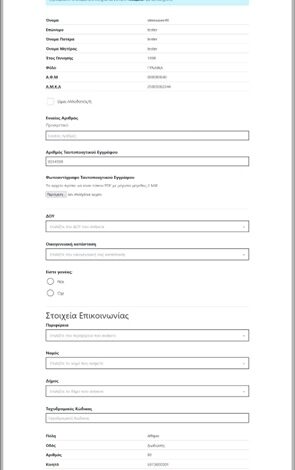 Η οριστική υποβολή είναι δυνατή μόνο μετά την πλήρη συμπλήρωση όλων των υποχρεωτικών πεδίων των τεσσάρων σταδίων.