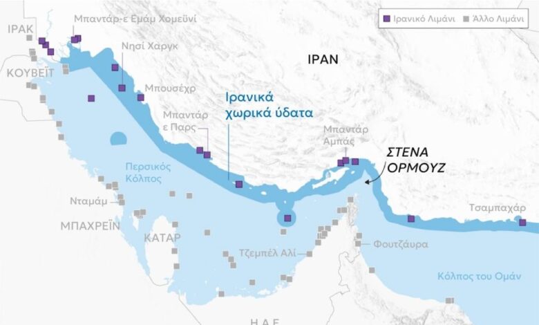 Τα ιρανικά λιμάνια που είναι υπό καθεστώς αποκλεισμού ύστερα από την απόφαση των ΗΠΑ για τα Στενά του Ορμούζ αποτυπώνει χάρτης.