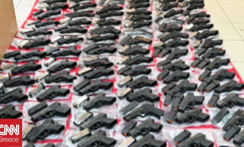 Υπανθυμίζεται ότι κατά την αστυνομική έρευνα εντοπίστηκαν σε αποσκευές 147 πιστόλια και 190 γεμιστήρες.
