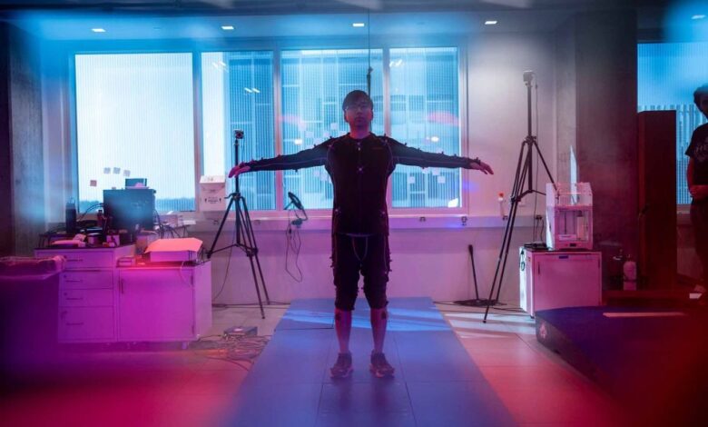 Ο μηχανικός βιοϊατρικής Ian Y. Kim επιδεικνύει μια στολή καταγραφής κίνησης στη Σχολή Μηχανικής και Επιστήμης Υπολογιστών Έρικ Τζόνσον του Πανεπιστημίου του Τέξας