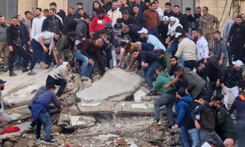 Σωστικά συνεργεία και πολίτες αναζητούν παγιδευμένους στα συντρίμμια κτηρίου που κατέρρευσε στο Λίβανο