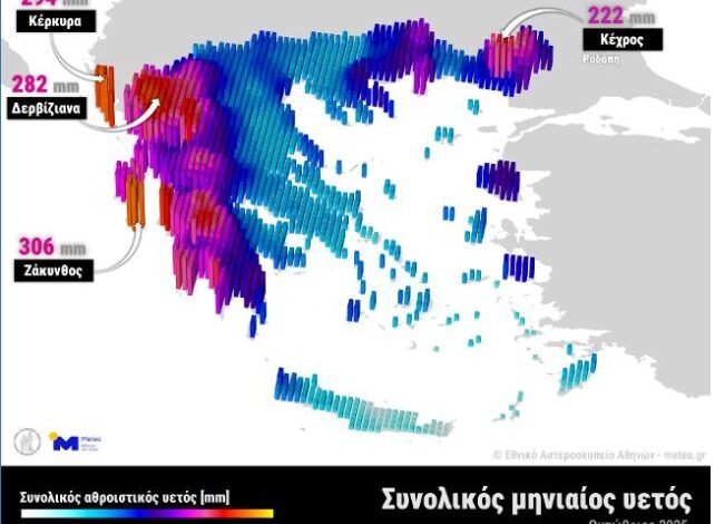 Ικανοποιητικές χαρακτηρίζονται από τους μετεωρολόγους του Meteo, οι βροχές που σημειώθηκαν τον Οκτώβριο του 2025 σε σύγκριση με τα μηνιαία ύψη βροχής και τις μέσες τιμές των τελευταίων 10-15 ετών. Μάλιστα όπως αναφέρουν οι ειδικοί οι περισσότερες βροχές με τα μεγαλύτερα ύψη αυτών σημειώθηκων σε Ιόνιο, Δυτική Ελλάδα και Θράκη, ενώ λιγότερες ήταν οι βροχές σε Θεσσαλία και Σποράδες.