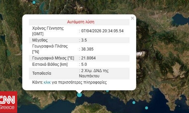 Σεισμική δόνηση 3,5 Ρίχτερ σημειώθηκε το βράδυ της Τρίτης (7/4) στη Ναύπακτο, αναστατώνοντας τους κατοίκους της περιοχής.