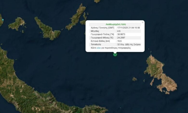 Σεισμός 4,6 Ρίχτερ ανοιχτά της Σκύρου, αισθητός και στην Αττική – Λέκκας: «Δεν μας ανησυχεί»