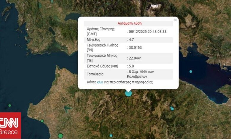 Σεισμός 4,7 Ρίχτερ στα Καλάβρυτα