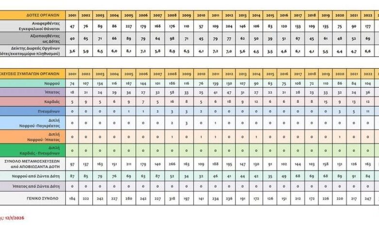 Πίνακας σχετικά με τη δωρεά οργάνων στην Ελλάδα
