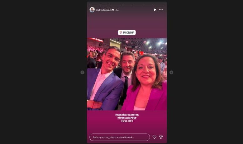 Μοιράστηκε μάλιστα μια selfie με τον Ισπανό Πρωθυπουργό και την Ιράτσε Γκαρσία, επικεφαλής της ευρωομάδας των Σοσιαλιστών.