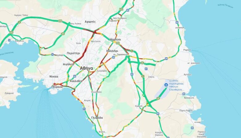 Συμφόρηση σε Κηφισό – Στο «κόκκινο» οι κεντρικοί άξονες της Αττικής