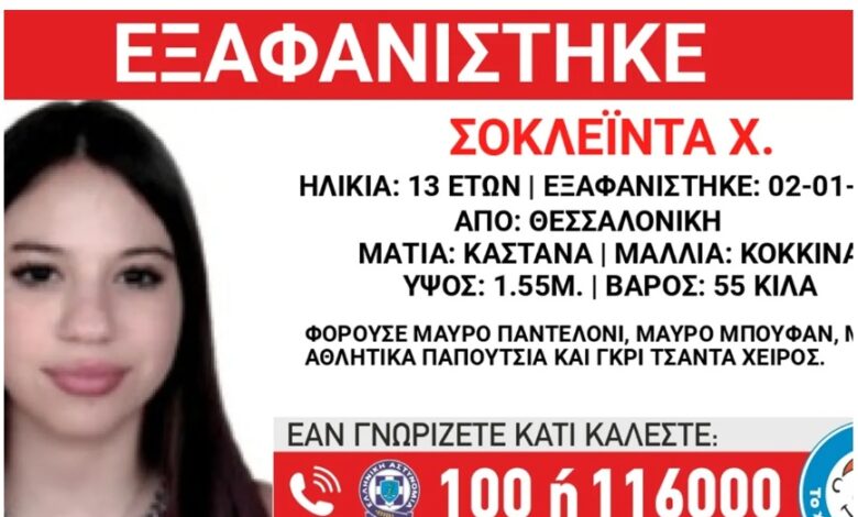 Η 13χρονη εξαφανίστηκε το βράδυ της Παρασκευής 2 Ιανουαρίου 2026 από χώρο φιλοξενίας.