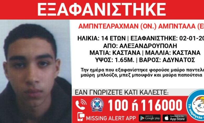 Συναγερμός για την εξαφάνιση 14χρονου στην Αλεξανδρούπολη