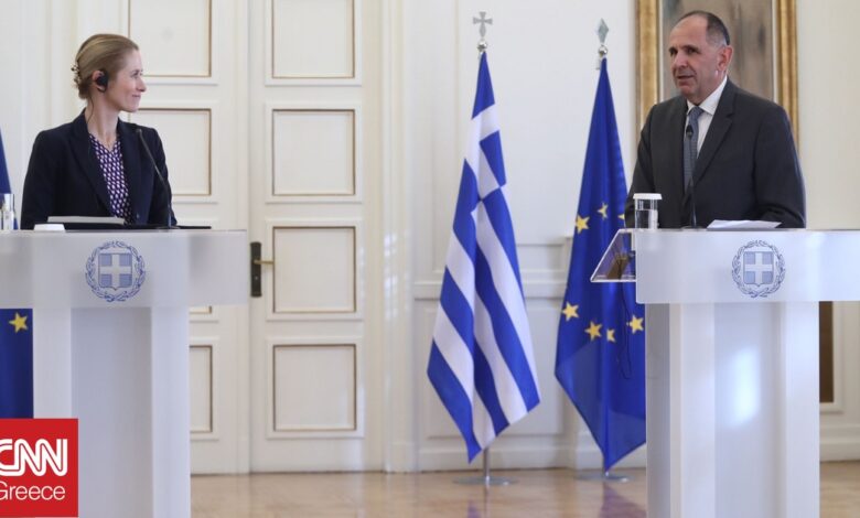 Σε πολύ θερμό κλίμα πραγματοποιήθηκε στο υπουργείο Εξωτερικών η συνάντηση του Έλληνα ΥΠΕΞ Γιώργου Γεραπετρίτη με την Ύπατη Εκπρόσωπο της Ευρωπαϊκής Ένωσης για θέματα εξωτερικής πολιτικής και πολιτικής ασφαλείας Κάγια Κάλας.