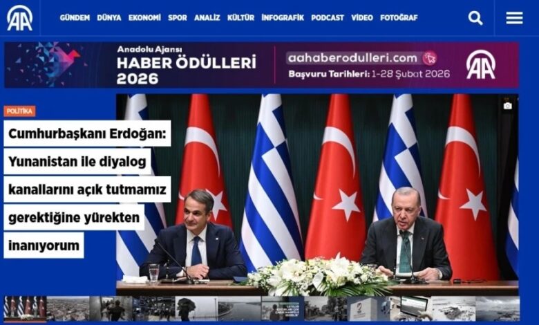 Το τουρκικό πρακτορείο Anadolu αναφέρθηκε εκτενώς στην κοινή συνέντευξη Τύπου του Κυριάκου Μητσοτάκη με τον Ταγίπ Ερντογάν παραθέτοντας τις δηλώσεις και του Τούρκου προέδρου αλλά και του Έλληνα πρωθυπουργού. Υπογραμμίζει ιδιαίτερα τη δήλωση Ερντογάν ότι πιστεύει με όλη την καρδιά του ότι οι δίαυλοι επικοινωνίας με την Ελλάδα πρέπει να παραμείνουν ανοιχτοί.