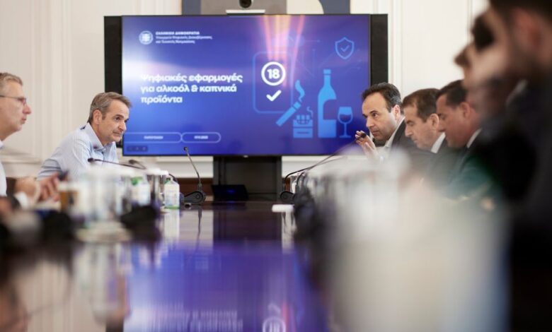 Σύσκεψη υπό τον Πρωθυπουργό Κυριάκο Μητσοτάκη με αντικείμενο την παρουσίαση νέων ψηφιακών εργαλείων για την προστασία των ανηλίκων από προϊόντα καπνού και αλκοόλ